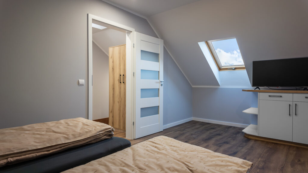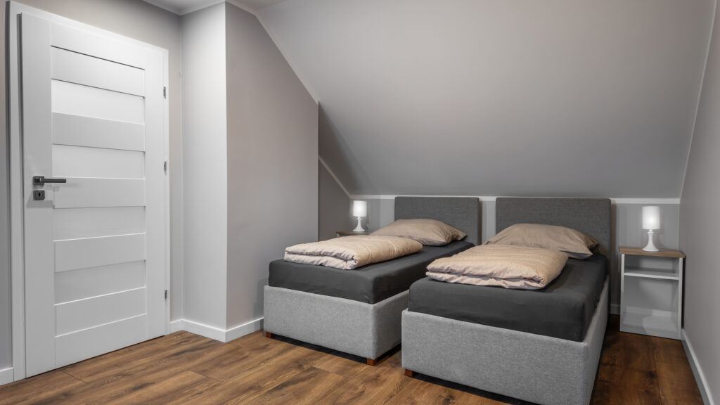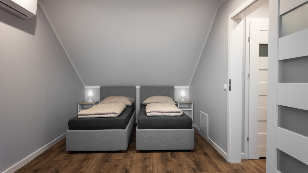 • 2 przytulne pokoje, każdy wyposażony w 2 pojedyncze łóżka z możliwością połączenia w podwójne
